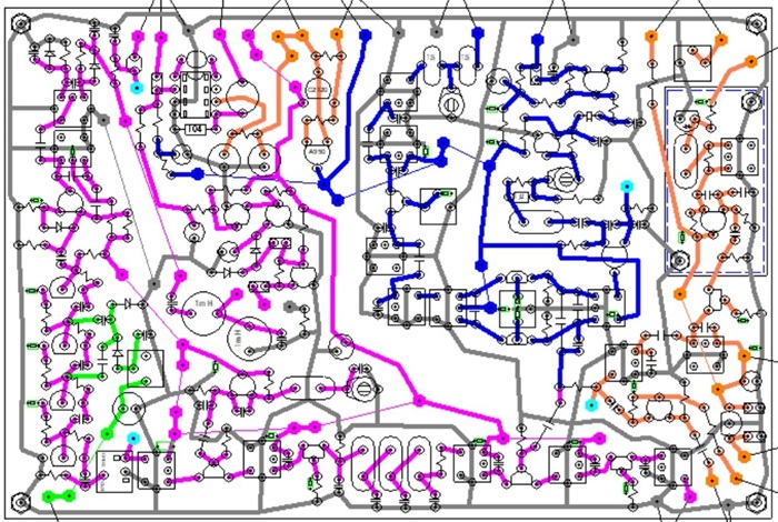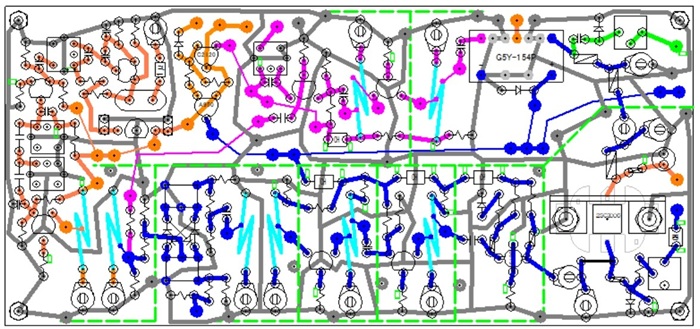 基板のサイズ150×100oをカットせずにをそのまま使います。固定機なので多少ゆとりを持った配置になりました。移動機なら基板を小さくしてもっと詰め込むことでしょう。hi