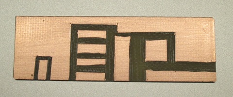 FCZ#206は両面基板を使い、裏面はグランドになっています。ここでは1mm厚片面ガラエポ基板の銅箔部を彫刻刀で削って作りました。