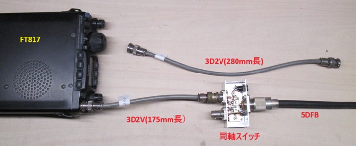 通常は144MHzで使い、430MHzのリグのスイッチを入れるとアンテナも勝手に切り替わるという、私のシャックに特化したものです。一般的には切換えスイッチを備えることでリモートでの操作を可能にします。また1台のリグで2本のアンテナを使い分けても良いでしょう。