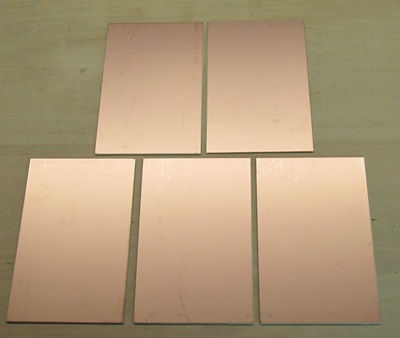 (1/30) ここ数年で銅価格の上昇なのかプリント生基板が随分値上がりしています。以前秋月で150×100×1mmのガラエポ10枚セット1,500円であったものの、その後は10枚2400円(エクール)も販売終了し、今では片面銅貼基板は扱っていません。サトー電気ではサンハヤトのものを@1,247円(150×100×1.6mm)で扱っていますが以前の3倍弱です。アマゾンで探すと「Aoje-Link片面銅張PCBラミネート回路基板」の150×100×1.5mm厚が5枚セット1,118円でありました。ところがカスタマーレビューを読むと悪い評価(キズ、ピンホール、反り、色違い等々)があり、買うのを躊躇していました。しかし手持が無くなってくると背に腹は代えられず、ダメ元で注文すると翌日届きました。不安な気持ちで開封すると、銅箔面に多少の擦り傷はあるものの問題になる程ではありません。基板の切り口がサンハヤトのようにきれいではなく雑な感じはしますが、ヤスリで仕上げれば問題ないでしょう。銅箔が薄いとの評価もありますが、QRPなので大電流を流すわけでもなくエッチング時間が短くなりそうなので、まずは使ってみることにします。