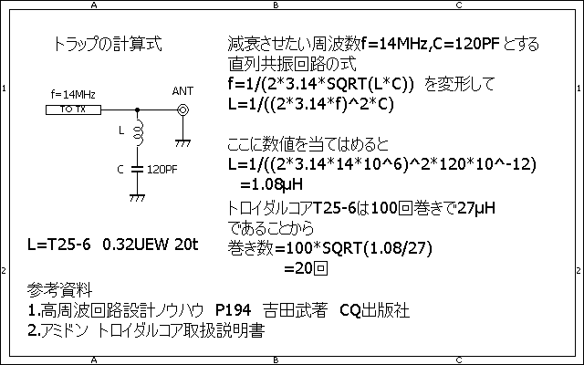 トランシーバーを作るには逓倍や周波数変換をするため、主信号に対しスプリアスという不要成分が現れます。それをLPFやBPFを通して主信号のみ取り出そうとしますが、取り切れない成分が残ることがあります。そんな時に特定の周波数成分を減衰させるのがトラップ(わな)です。
